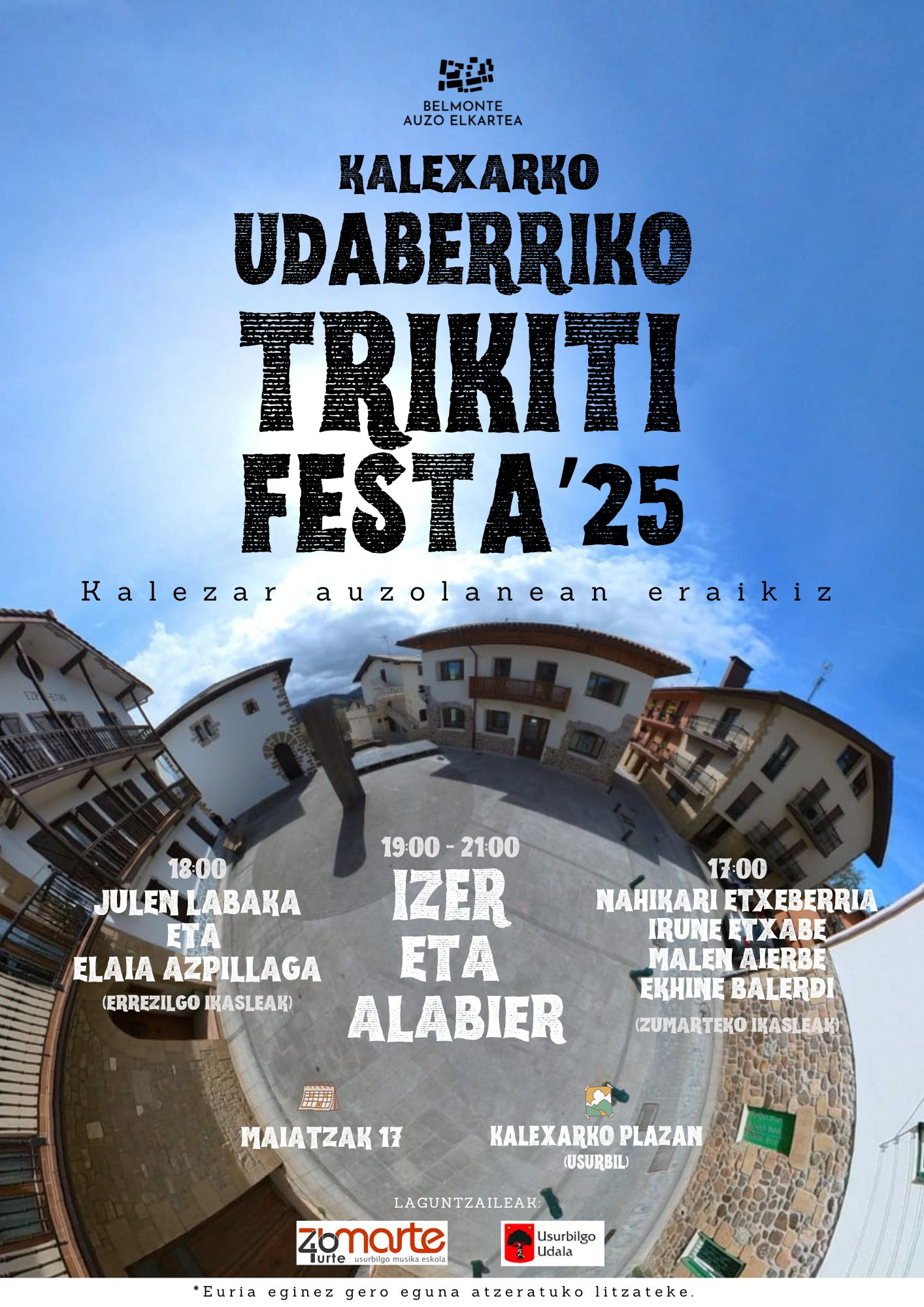 Zumarte Musika Eskolarekin elkarlanean, Errezil eta Zumarteko ikasleen erromeriekin hasiz eta Izer eta Alabier trikitilariekin amaituz alaituko dugu auzoa larunbat arratsaldean.