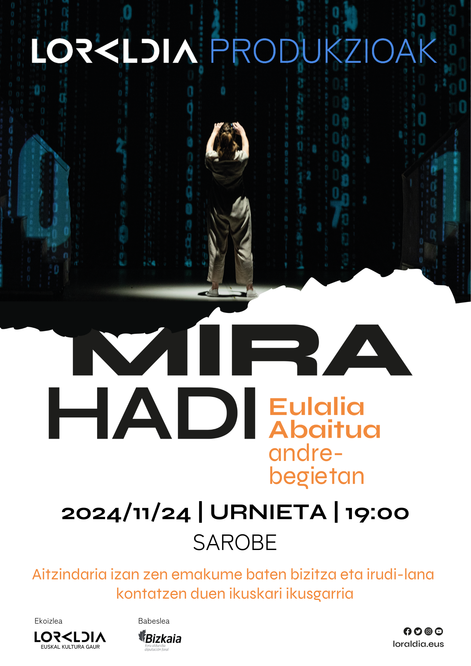 Beraz, aitzindaria eta bidegile handia izan zen, baina gaur egun oraindik ezezaguna da gure artean. Euskal kulturak zor dio onespena eta ezagutza. Horregatik, Loraldia Kultur Elkarteak sustatu du ikuskizun hau. Aurretik Anton Abbadia, Elkano edo Iparragirrerekin egin zen bezala, Eulalia Abaitua sormen garaikide baten bidez eramango da oholtza gainera.