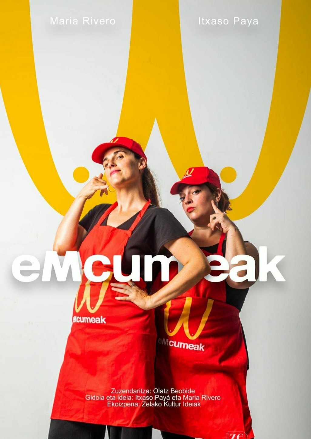 eMcumeak bulegoa emakume sortzaileen kontratazio-bitartekaritza egiten duen enpresa da. Mariak eta Itxasok eMcumeak bulegoan lan egiten dute. Egunero jasotzen dituzte herritarren, elkarteen, udalen edota (kuota betetzeko) emakume sortzaileak behar dituzten bezeroen eskariak. Nola ez, oztopoak aurkituko dituzte bidean. Zuzeneko musika, bertsoak eta antzerkia, besteak, beste, eskaintzen ditu eMcumeak ikuskizunak. Euskal emakume sortzaileen egoera mahai gainean jarri eta oholtzara ekarriko dituzte, izenaz eta izanaz. Umoretsu eta kritika egiteko asmoz sortutako performance honek, satiratik ere badu zerbait.