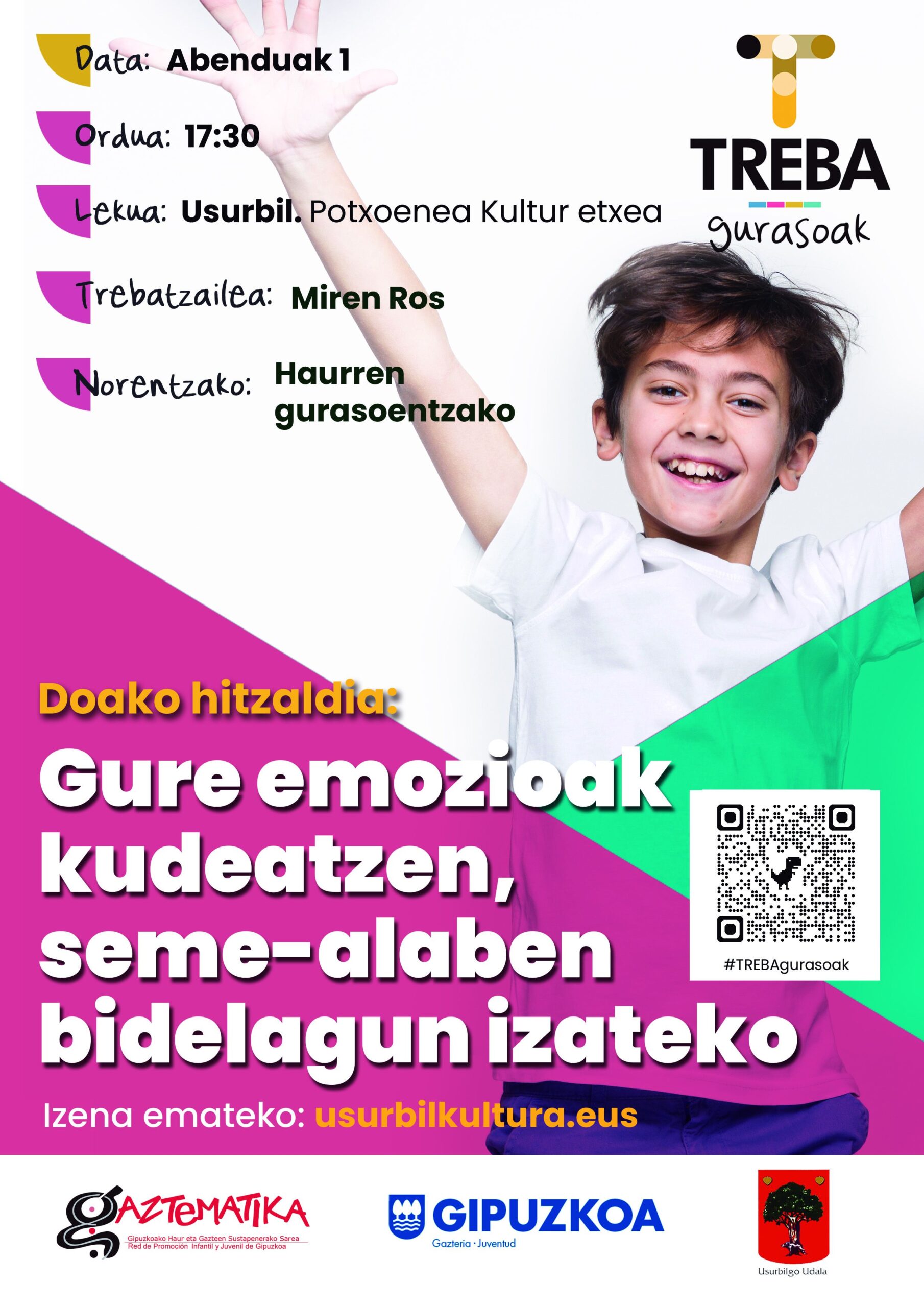 Norentzat: haur eta nerabeen gurasoentzat. Izen-ematea: doan. usurbilkultura.eus webgunearen bidez. Plaza-kopurua mugatua da.