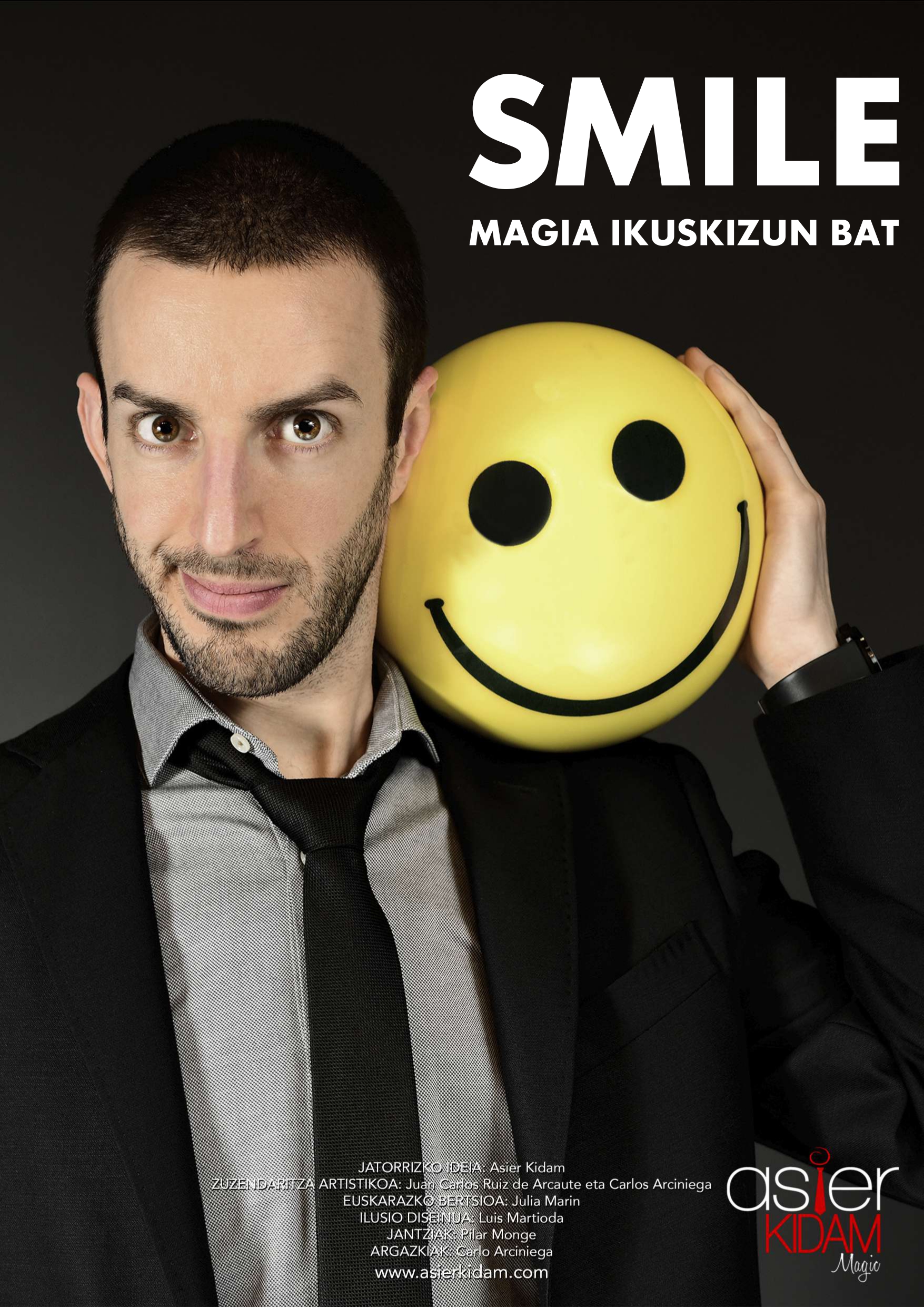 Aspertuta zaudela zeure koinatua brokolia goratzen entzuteaz? Faktura eta prezioen igoerak itotzen zaituela? Etxeko txikiekin egiteko ideia dibertigarriak agortu zaizkizula? Hartzazu atseden eta zatoz “Smile” ikustera. Ikuskizunak irauten dituen 60 minutuetan zehar zeure arazoak desagertu eta haien lekuan sekulako irribarrea agertuko da. Ezinezkoa eta dibertigarria den zerbait ikusten dugunean marrazten zaigun irribarre horietako bat. Zin dagizut !!!