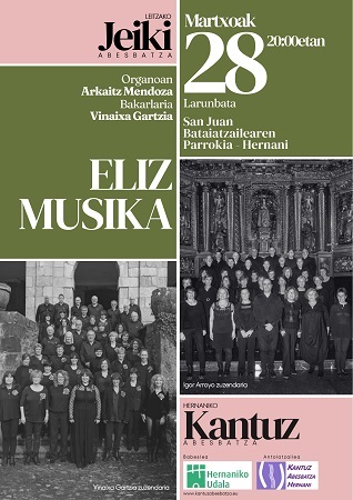 Hernani28Martxoa20:00San Joan Bataiatzailearen elizaKontzertu sakroa: Hernaniko Kantuz eta Leitzako Jeiki abesbatzak